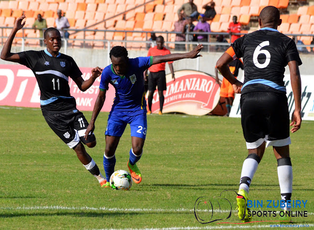 Mshambuliaji Ibrahim Hajib wa Tanzania akimtoka beki wa Botswana