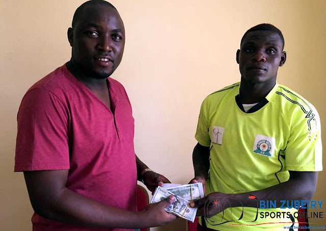 Sanga Festo akimkabidhi fedha zake Mutasa mwenye umri wa miaka 22. Singida United ipo chini ya ulezi wa Waziri wa Mambo ya Ndani, Mwigulu Nchemba